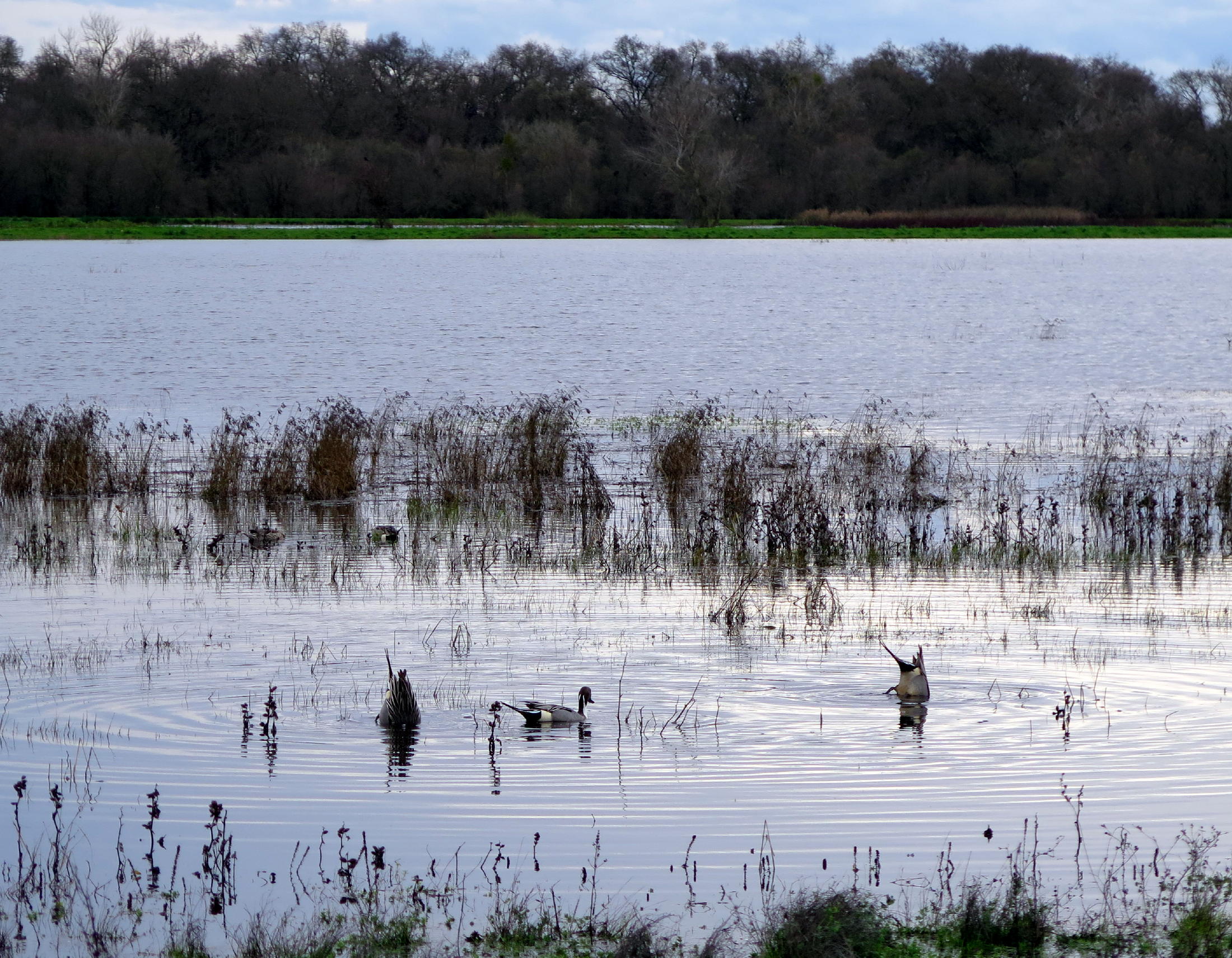 northern pintails feeding |