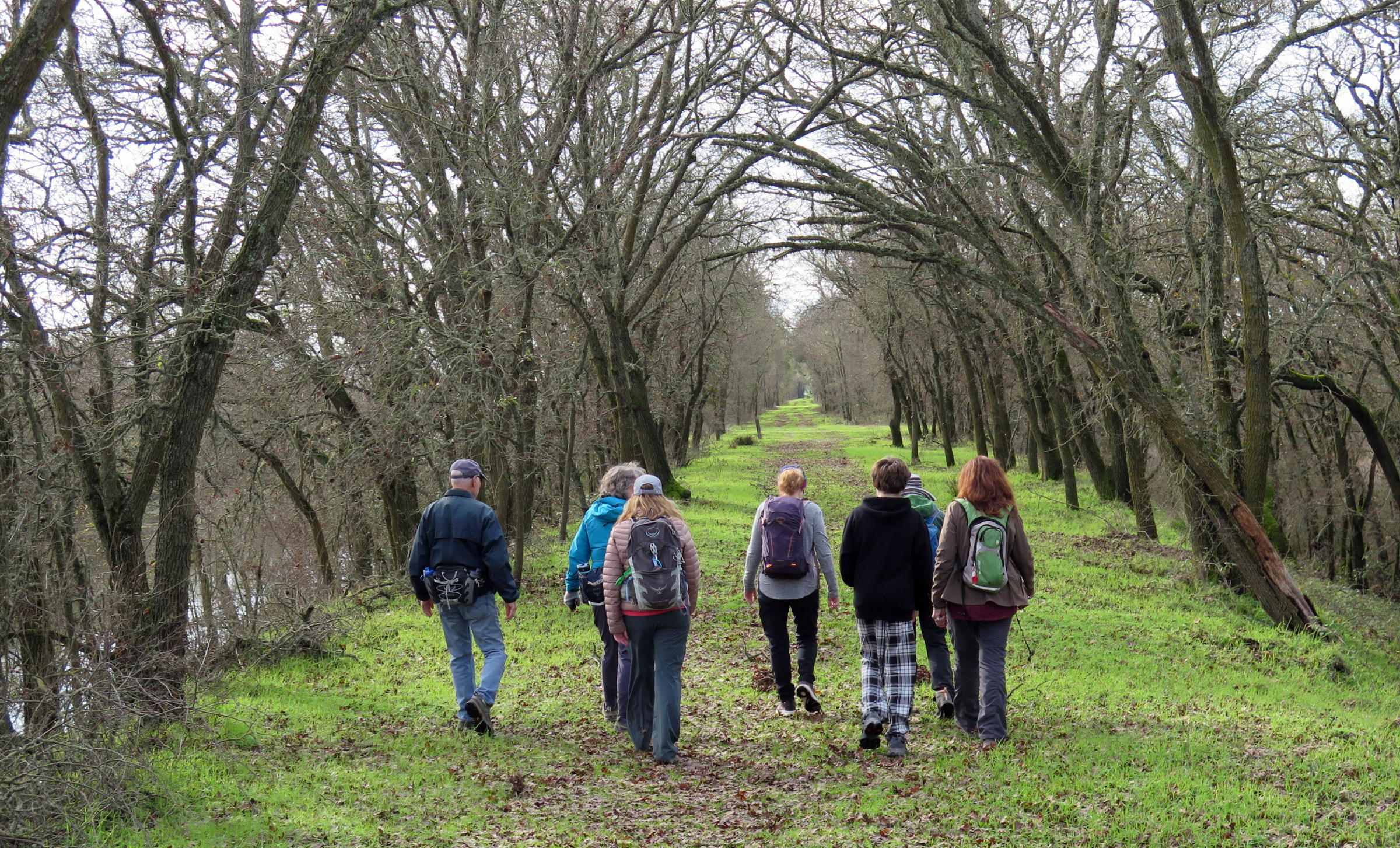 On Friday, January 2nd, eleven walkers met for coffee at Rescate in Elk Grove at I-5. After 30 minutes we drove about 20 miles south to Walnut Grove, to walk on the Meadows Slough levees.
