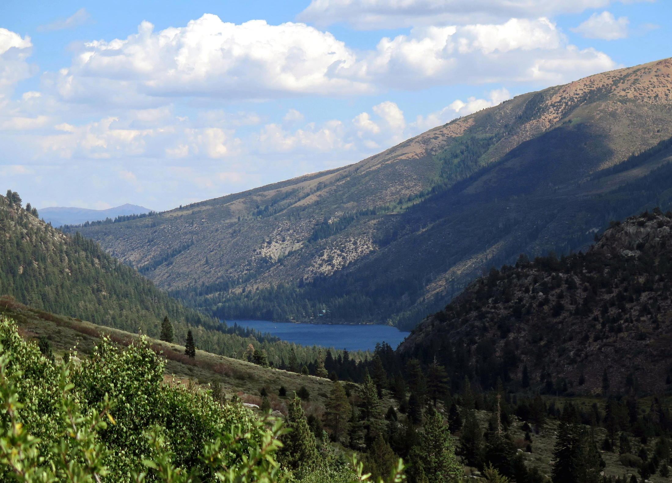 Twin Lakes at 7,081 ft., and Sierra peaks at about 12,300 ft.