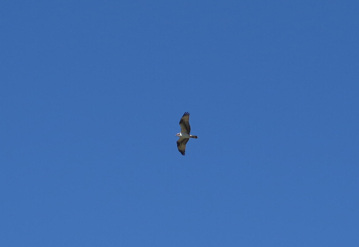 note 2 - on the start of the return walk, Linda became mystified because she had just found an interesting stone in a streambed, a rock with a distinct bird-flying mark. Then only minutes later an osprey fly over, a sign from above? Thirty minutes later she told me that pondering this helped her make her mind up on something. (see Epilogue)